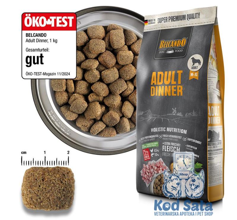 Belcando Adult Dinner je visokokvalitetna suva hrana namenjena odraslim psima srednjih i velikih rasa sa normalnim nivoom aktivnosti. Formulisana je tako da pruži stabilnu energiju, odličnu svarljivost i optimalnu nutritivnu podršku psima koji vole da žvaću veće kroketice i uživaju u bogatom, prirodnom ukusu.
