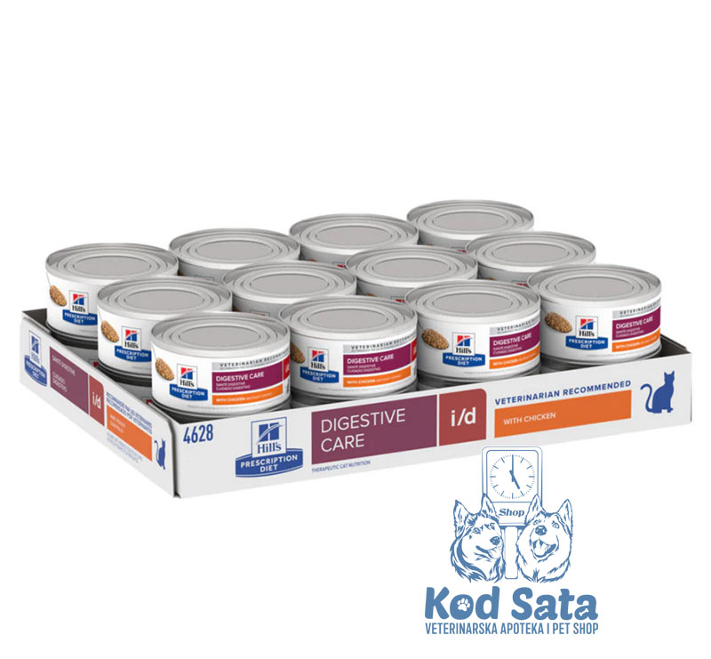 Hill's Prescription Diet i/d posebno je formulisana za mačke sa akutnom dijarejom, hroničnim enteropatijama, pankreatitisom i drugim stanjima koja dovode do lošeg varenja i smanjene apsorpcije hranljivih materija.