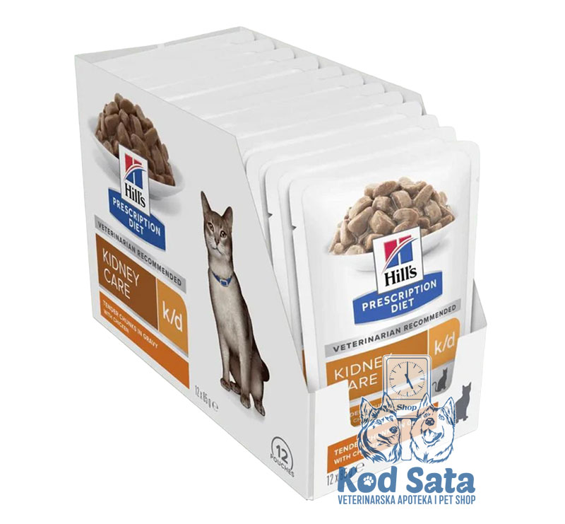 Hill's Prescription Diet k/d je klinička ishrana razvijena da pomogne u zaštiti vitalne funkcije bubrega, podstakne apetit i poveća unos hrane kod mačaka. Ova vlažna hrana deluje kao stimulans apetita i dokazano pomaže u poboljšanju i produženju kvaliteta života.
