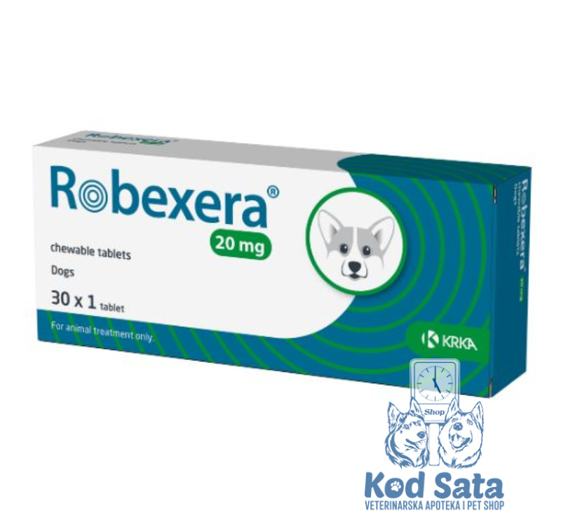 Robexera 20 mg su žvakaće tablete za pse koje sadrže 20 mg robenakoksiba po tableti (NSAID – nesteroidni antiinflamatorni lek, iz grupe koksiba). Namenjene su za smanjenje bola i upale, posebno kod hroničnih problema sa zglobovima i u perioperativnom periodu.